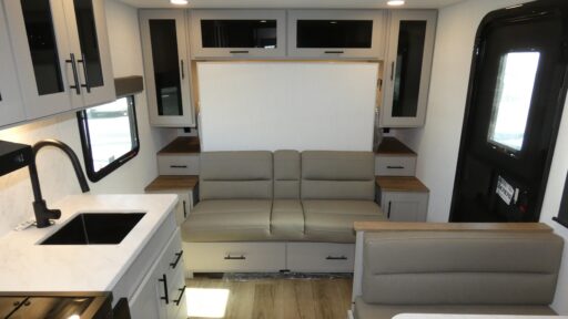 Each Delta Solo Model Each is designed to provide both comfort and convenience in a compact footprint. Inside, you'll find residential-style touches like can-style LED ceiling lights, cabinet doors with magnetic catches, and commercial-grade vinyl flooring built to last. On the exterior, practical travel features include exterior switches for the slide-out and awning, sturdy Step Above fold-out entry steps, and color-coded, numbered wiring for simplified maintenance and troubleshooting.