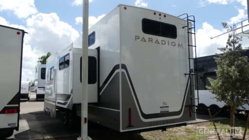 The Paradigm fifth wheels by Alliance RV are functional, high-quality, and luxurious for an unforgettable camping experience. There are three A/C units and a 40K BTU furnace to keep you comfortable year around, and you'll appreciate additional convenient amenities, like the all-in-one enclosed/heated utility center and the color coded and numbered wiring. A Helux Series coil spring pin box comes standard for hassle-free towing, along with Super-G 4,400 lb. rated tires and Dexter 7,000 lb. axles. You'll love the kitchen with its LG solid surface countertops and Lusso range, plus there is LED motion lighting in the pantry and a Maxx fan with a rain sensor to keep everything fresh when making dinner. Each model also includes an HD Smart TV in the living room and bedroom, plus a Winegard Air 360 antenna to keep you connected to the outside world.