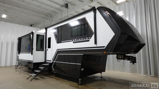 Step into the future of RV living with the 2026 Brinkley Model G 3970. This impressive fifth wheel is designed to elevate your adventures with its spacious and innovative layout. Measuring over 45 feet in length, it offers a luxurious escape with room for up to nine guests. The front bedroom features a king bed for ultimate comfort, while convertible options ensure everyone has a cozy place to rest. The center kitchen is a chef’s dream, equipped with a full-size electric refrigerator, convection cooking, and a four-burner cooktop, making meal prep a breeze.
