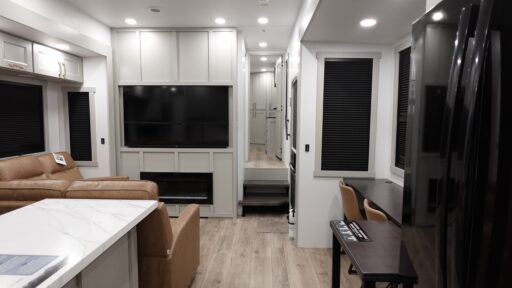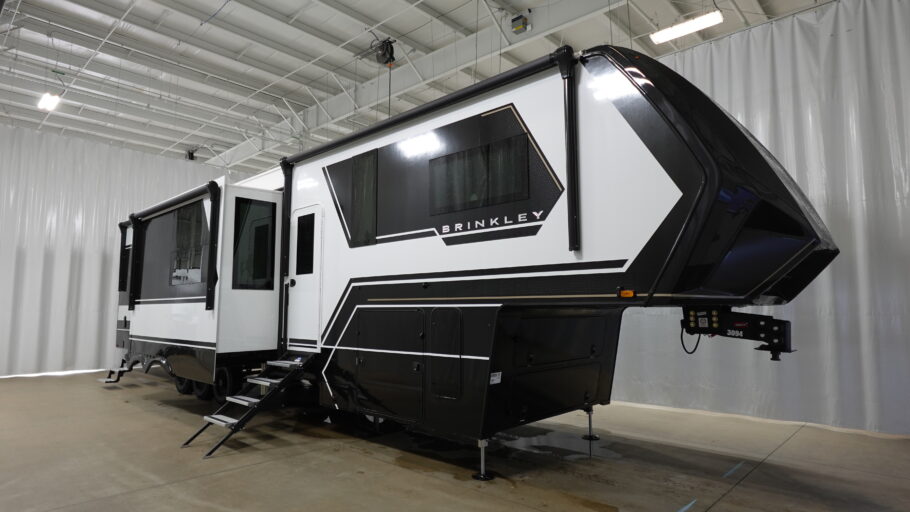 Step into the future of RV living with the 2026 Brinkley Model G 3970. This impressive fifth wheel is designed to elevate your adventures with its spacious and innovative layout. Measuring over 45 feet in length, it offers a luxurious escape with room for up to nine guests. The front bedroom features a king bed for ultimate comfort, while convertible options ensure everyone has a cozy place to rest. The center kitchen is a chef’s dream, equipped with a full-size electric refrigerator, convection cooking, and a four-burner cooktop, making meal prep a breeze.
