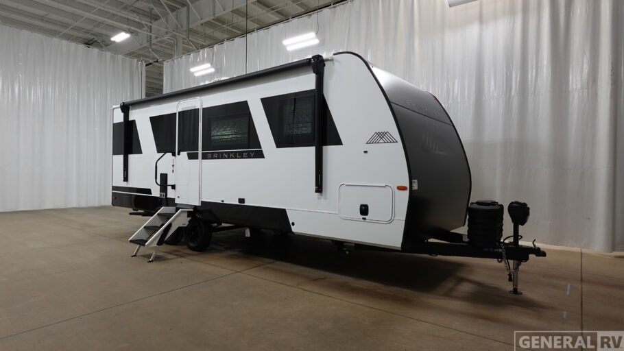 The lightweight Model I travel trailer by Brinkley is the perfect choice for those looking for an easy tow and at-home comforts! There is a drop-frame chassis, high-performance Road Armor suspension equalizer system, and Demco EZ Latch trailer coupler that automatically latches when dropped onto a hitch ball without the need of a safety pin. Additional exterior features include square Euro frameless windows, automotive-grade paint, full-width LED strip lighting in the pass-thru, and a pet & property security campside tie-down to keep your gear and furry friends safe. Inside, you'll be wowed by Brinkley's CraftSense wood trim construction, residential solid surface kitchen countertops, dimmable bedroom lights, and marine-grade neon LED shower lighting to name a few stand-out features!