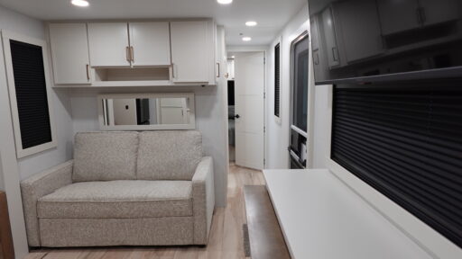 Step into the future of RV living with the 2025 Brinkley RV Model I 275. This 30.92-foot marvel combines luxury and practicality, offering an inviting space for up to four adventurers. The heart of this RV is its rear kitchen, equipped with a full-size refrigerator and three-burner cooktop, perfect for culinary creations on the road. The center living area boasts theater seating and a convertible tri-fold sofa, providing a comfortable retreat for relaxation or entertaining. Enjoy the convenience of the pull-out dining table with a smart window/screen, allowing you to dine with a view.