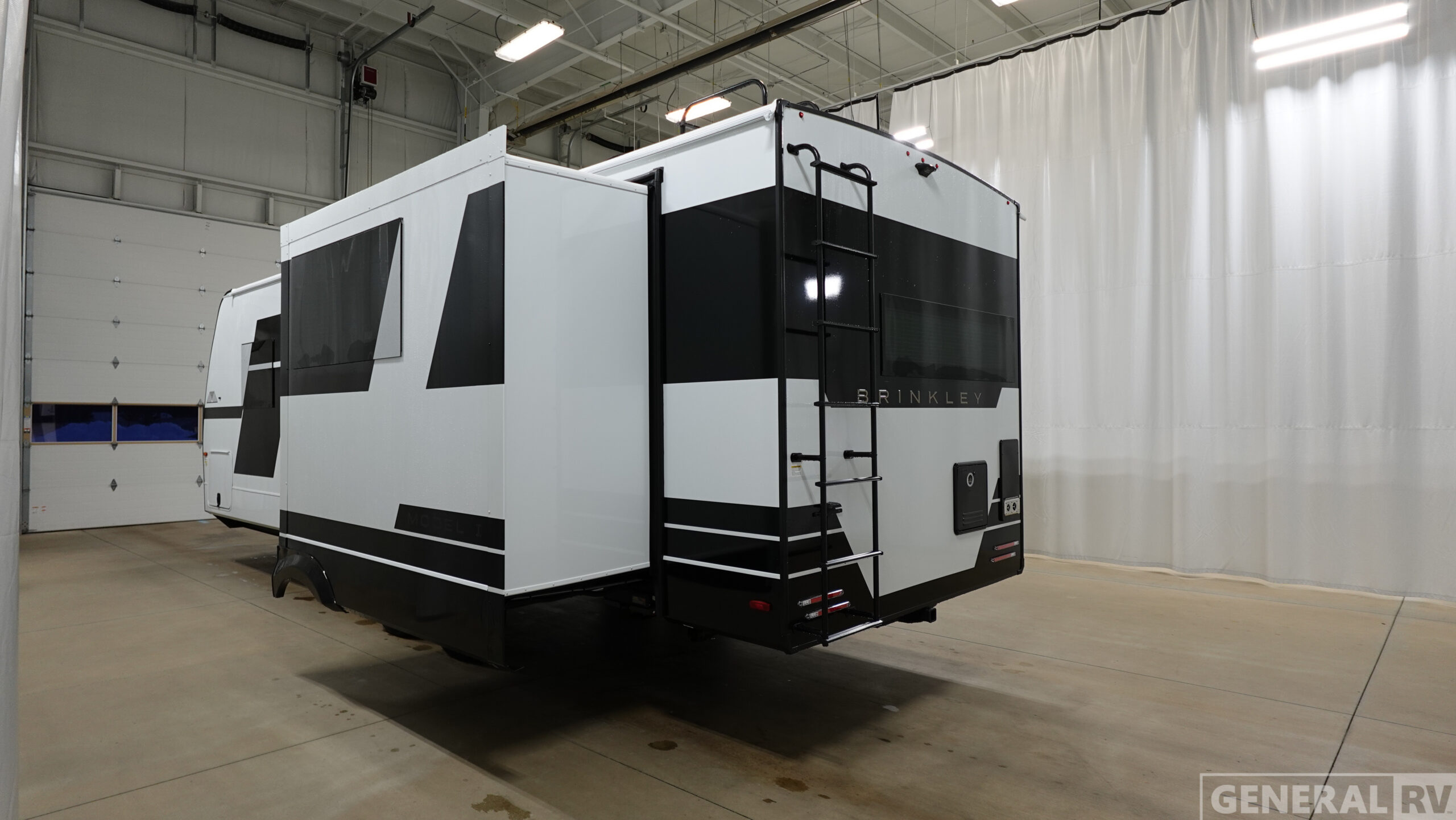 The lightweight Model I travel trailer by Brinkley is the perfect choice for those looking for an easy tow and at-home comforts! There is a drop-frame chassis, high-performance Road Armor suspension equalizer system, and Demco EZ Latch trailer coupler that automatically latches when dropped onto a hitch ball without the need of a safety pin. Additional exterior features include square Euro frameless windows, automotive-grade paint, full-width LED strip lighting in the pass-thru, and a pet & property security campside tie-down to keep your gear and furry friends safe. Inside, you'll be wowed by Brinkley's CraftSense wood trim construction, residential solid surface kitchen countertops, dimmable bedroom lights, and marine-grade neon LED shower lighting to name a few stand-out features!
