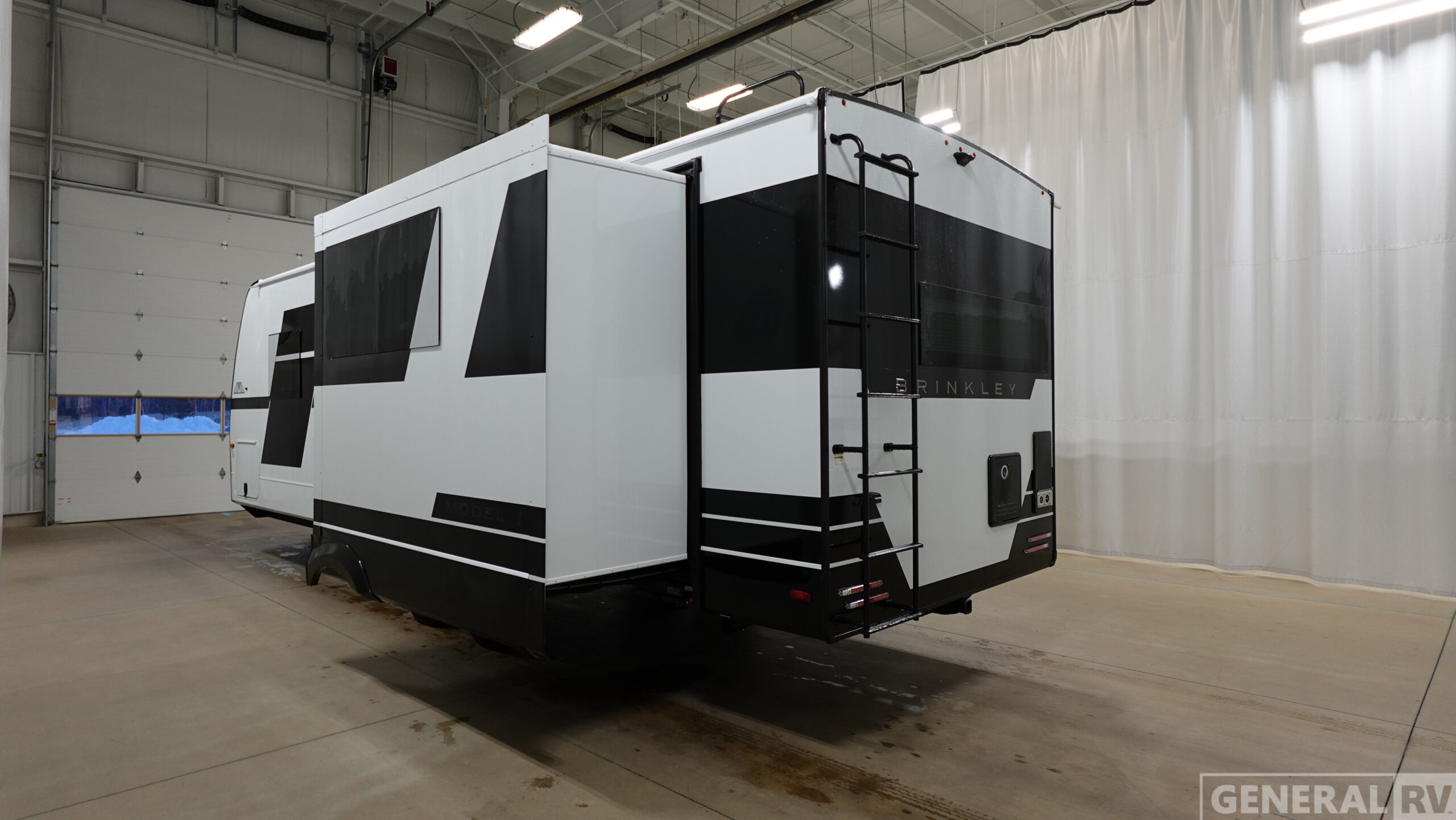 The lightweight Model I travel trailer by Brinkley is the perfect choice for those looking for an easy tow and at-home comforts! There is a drop-frame chassis, high-performance Road Armor suspension equalizer system, and Demco EZ Latch trailer coupler that automatically latches when dropped onto a hitch ball without the need of a safety pin. Additional exterior features include square Euro frameless windows, automotive-grade paint, full-width LED strip lighting in the pass-thru, and a pet & property security campside tie-down to keep your gear and furry friends safe. Inside, you'll be wowed by Brinkley's CraftSense wood trim construction, residential solid surface kitchen countertops, dimmable bedroom lights, and marine-grade neon LED shower lighting to name a few stand-out features!
