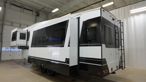 The Brinkley mid-profile Model Z fifth wheels bring you clean lines and an upscale look with plenty of style and exciting new features like the industry first brass plumbing connections. These units also feature an automotive grade front cap, plenty of exterior storage, dual exterior hot and cold showers, and wide stance leveling jacks for easy set up. Residential frameless windows provide a clean look and beautiful views, and ample electrical outlets and 6 USB/USB-C outlets allow all of your electronics and appliances to easily be used and charged.