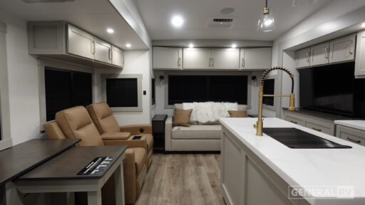 The Brinkley mid-profile Model Z fifth wheels bring you clean lines and an upscale look with plenty of style and exciting new features like the industry first brass plumbing connections. These units also feature an automotive grade front cap, plenty of exterior storage, dual exterior hot and cold showers, and wide stance leveling jacks for easy set up. Residential frameless windows provide a clean look and beautiful views, and ample electrical outlets and 6 USB/USB-C outlets allow all of your electronics and appliances to easily be used and charged.