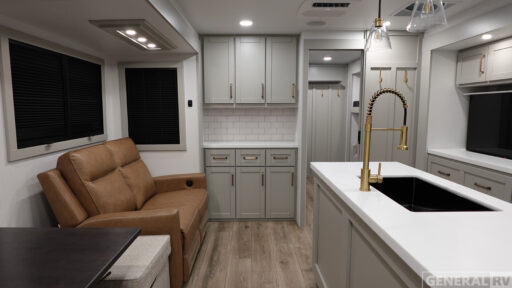With a fresh water capacity of 61 gallons and generous gray and black water tanks, the Model Z Air 315 is ready for extended journeys. The dual awnings provide shaded outdoor space, perfect for enjoying the great outdoors. Discover the perfect blend of comfort and style in this remarkable RV. For more information, visit your nearest General RV dealership.