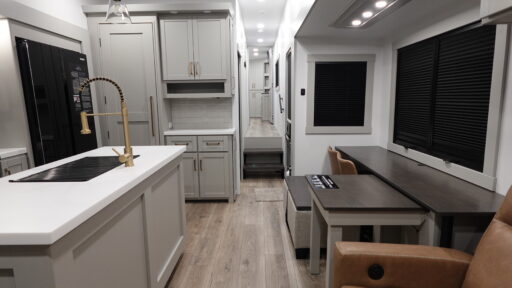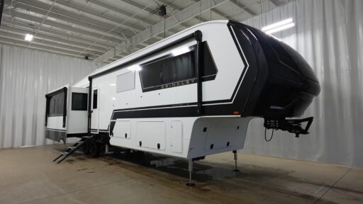 The Brinkley mid-profile Model Z fifth wheels bring you clean lines and an upscale look with plenty of style and exciting new features like the industry first brass plumbing connections. These units also feature an automotive grade front cap, plenty of exterior storage, dual exterior hot and cold showers, and wide stance leveling jacks for easy set up. Residential frameless windows provide a clean look and beautiful views, and ample electrical outlets and 6 USB/USB-C outlets allow all of your electronics and appliances to easily be used and charged.