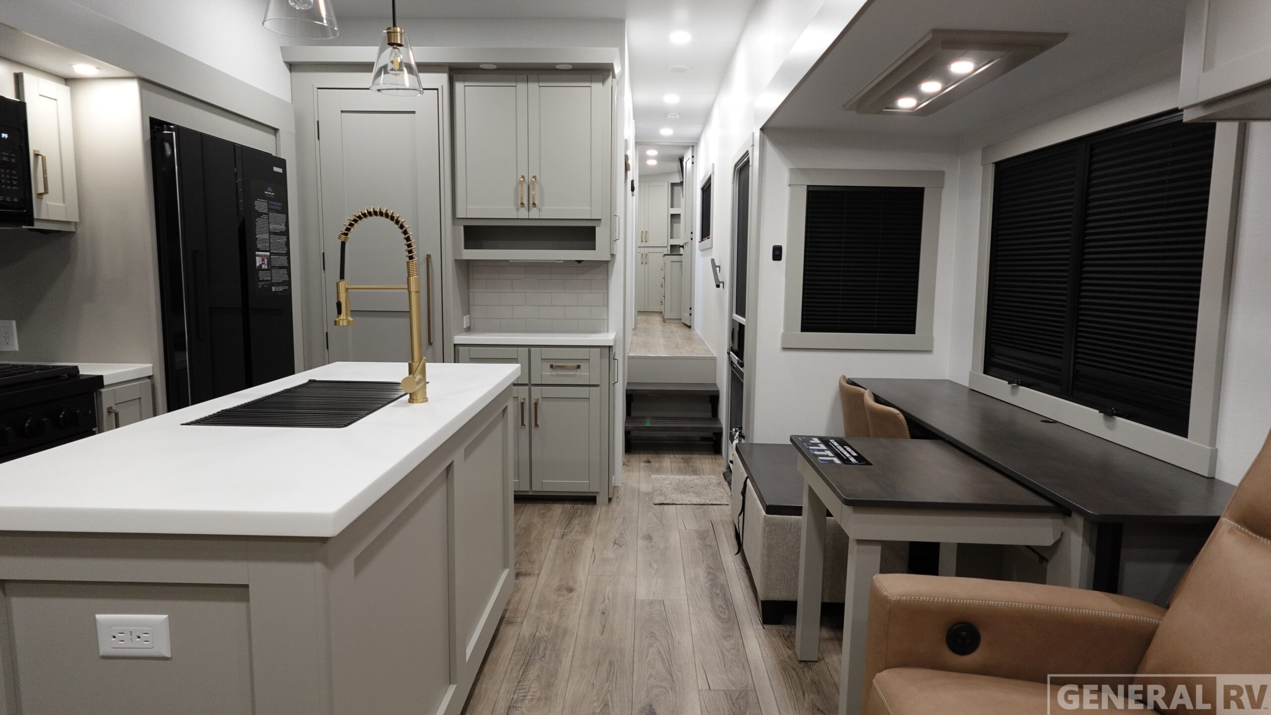 The Brinkley mid-profile Model Z fifth wheels bring you clean lines and an upscale look with plenty of style and exciting new features like the industry first brass plumbing connections. These units also feature an automotive grade front cap, plenty of exterior storage, dual exterior hot and cold showers, and wide stance leveling jacks for easy set up. Residential frameless windows provide a clean look and beautiful views, and ample electrical outlets and 6 USB/USB-C outlets allow all of your electronics and appliances to easily be used and charged.