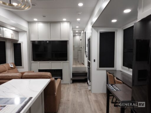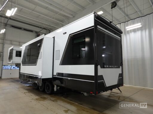 Step into the future of RV living with the 2025 Brinkley Model G 3250. This luxurious fifth wheel is designed to be your home away from home, offering a spacious and thoughtfully laid-out interior that comfortably sleeps up to five guests. With a queen and an optional king bed, plus a cozy bunk, everyone will find their perfect spot to unwind after a day of adventure. The heart of this RV is its center kitchen, equipped with a full-size electric refrigerator and a four-burner cooktop, making meal prep a breeze. The convection cooking feature ensures you can whip up your favorite dishes with ease.