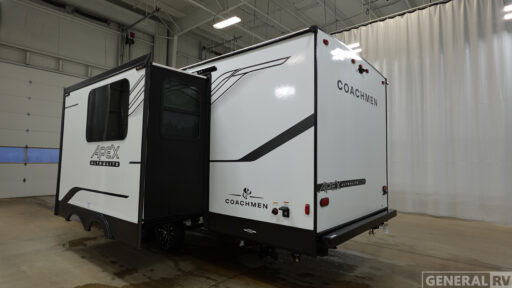 Lightweight living and camping is found with the Apex Ultra-Lite travel trailers by Coachmen. These eco-friendly units are made to last thanks to the Azdel composite sidewalls, the laminated aluminum floor, and the vacuum-bonded laminated crowned roof. Easy lube axles make towing easier than ever, plus there is a friction hinge entrance door, a 200-watt solar panel with a 30 Amp control charger, and slam latch baggage door catches for easy unloading. Some of the interior comforts you'll fall in love with are the one-piece seamless edge countertops, the hard valances with night shades, the matte black hardware, and the Casino Bisque cabinetry. The Apex Ultra-Lite trailers also include a USB charge station, plus a digital TV antenna with cable hook-ups and Wi-Fi capability for the option to stay connected as you camp!