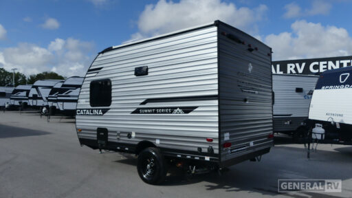 With any Catalina Summit Series 7' by Coachmen RV, you can create an easier adventure with the versatility and simplicity of the shorter lengths and lighter weights! Each includes a premium exterior graphics package, a smooth HD aluminum radius front, and EZ lube axles with leaf spring suspension. The exterior offers a heavy duty standard tongue jack, a diamond plate rock guard to protect against road debris, exterior RG-6 coax cabling and satellite prep, rear view camera prep, and flush mount baggage doors with radius corners for your outdoor gear. Inside, you will enjoy a premium JBL interior speaker, USB charging ports, seamless Thermofoil countertops throughout, a deep basin farm style sink for easy cleanup, and GE kitchen appliances. It's time to choose an affordable and maneuverable single axle trailer today!