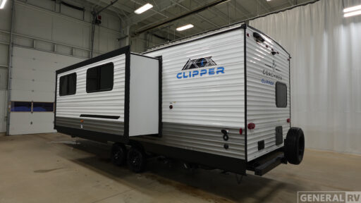 With any Coachmen Clipper 6K Series travel trailer, you can experience affordable camping with your family with the same comforts and quality as the bigger trailers. Each is built on a BAL NXG frame, and includes a seamless one-piece TPO roof membrane, easy lube axle(s), and HUCK bolt assembly construction. The interior offers a kitchen sink drying rack, a 12V refrigerator, and a foot flush toilet, plus more. You will also appreciate the tankless on demand water heater plus the 13.5k BTU A/C and 30k BTU furnace to ensure your comfort!