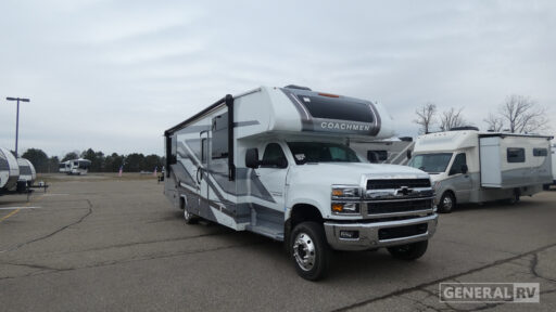 The Entourage is Coachmen's first super C diesel motorhome and it is packed with upscale appointments and solid construction so you can enjoy the RV lifestyle for years to come. This coach features a 4x4 diesel chassis (either a Chevy Silverado 5500 with a V8 6.6L diesel engine, or International CV chassis, depending on the model you choose), plus 50 amp service and a 2,000 watt inverter for all your power needs. The mandatory Icon Package includes a porcelain macerator toilet, auto generator start with dual batteries, 50 amp service, a tankless water heater, and more!