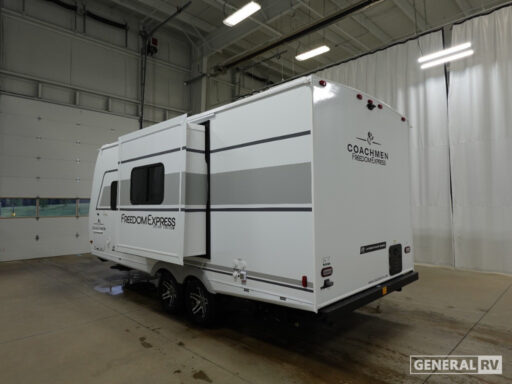 Experience the perfect blend of comfort and versatility with the 2026 Coachmen Freedom Express Select 19SE. This compact yet spacious travel trailer is designed for those who crave adventure without sacrificing the comforts of home. With a length of just over 22 feet, it's easily maneuverable while still offering ample living space. The center kitchen is equipped with a three-burner cooktop and a full-size electric refrigerator, making meal preparation a breeze. The free-standing table and sofa provide a cozy dining and relaxation area, easily converting to additional sleeping space when needed.