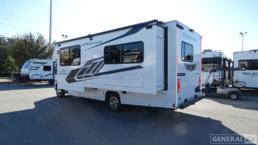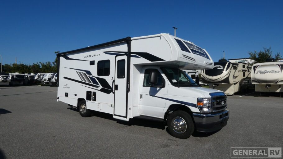 With each Leprechaun Class C gas motorhome by Coachmen you will enjoy "better" interior appointments, like the residential-sized beds, on-demand tankless water heater, and 15,000 BTU A/C. A dash radio and a backup monitor will let you easily navigate the open road like pro. There are also pleated night shades inside, along with premium vinyl flooring, a shower skylight, and USB charging ports to name a few comforts and conveniences. The Leprechaun is constructed with composite sidewall and cabover floor construction plus a seamless one-piece roof material for a durable motorhome made to last.