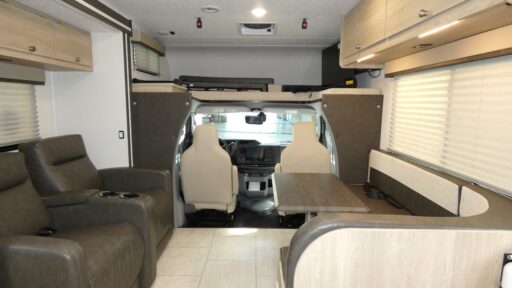 With each Leprechaun Class C gas motorhome by Coachmen you will enjoy "better" interior appointments, like the residential-sized beds, on-demand tankless water heater, and 15,000 BTU A/C. A dash radio and a backup monitor will let you easily navigate the open road like pro. There are also pleated night shades inside, along with premium vinyl flooring, a shower skylight, and USB charging ports to name a few comforts and conveniences. The Leprechaun is constructed with composite sidewall and cabover floor construction plus a seamless one-piece roof material for a durable motorhome made to last.