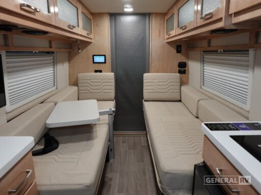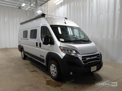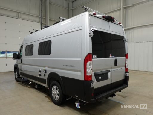 The rear bath features a convenient wet bath setup, complete with a shower curtain, ensuring a refreshing start to your day. The galley is equipped with a two-burner cooktop and a compact electric refrigerator, ideal for preparing delicious meals on the go. The 13.1-foot powered retractable awning extends your living space outdoors, perfect for enjoying the scenery from the comfort of your campsite. Built on the reliable ProMaster 3500 chassis with a powerful Pentastar VVT V6 engine, this RV offers a smooth and confident drive. For more details and to explore this model further, visit your nearest General RV dealership.