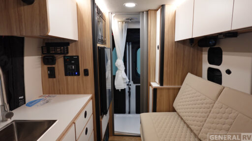 Climate comfort is handled by the Truma Aventa roof-mount air conditioner and integrated Truma furnace/hot water system, keeping the interior pleasant in changing weather. Smart storage, a quiet generator, and a solid electrical system with 30-amp service round out the Pixel’s feature set, making it ideal for weekend escapes or extended road trips where compact size and big usability matter.