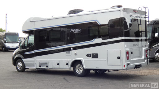 With any of the Prism Elite Class C diesel motorhomes, the Coachmen legacy of upscale luxury with Mercedes-Benz drivability is found throughout. With the aerodynamic and stylish rear fiberglass cap and integrated fiberglass running boards, plus full body paint choices, you are sure to turn heads as you travel to your destination. There are also upgraded MorRyde cargo doors outside, along with an armless awning to enjoy some shade. The interior provides solid surface countertops with lit edge banding, a soft touch ceiling, LED batton strip lights, and Curio glass in the overhead kitchen cabinets. A Truma Aqua Go on-demand water heater will provide endless hot showers, and the 15K BTU low profile A/C will keep you cool all summer long. Choose a reliable and luxurious Prism Elite today!