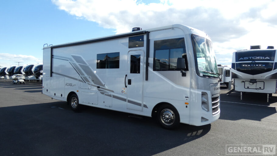 Pursue big dreams with one of these Coachmen RV Pursuit Class A gas motorhomes! The high gloss dove grey sidewalls with Azdel superlight composite, fiberglass front cap, and crowned, laminated TPO roof will hold up for years to come. A Ford F53 7.3L V8 engine propels your unit with an abundance of power to each destination. All of your extra gear can easily be stored in the spacious exterior storage compartments to keep from taking up space on the inside. The exterior propane hook-up will come in handy and some models even have an outside entertainment center with a TV. Come find the right one for you today!