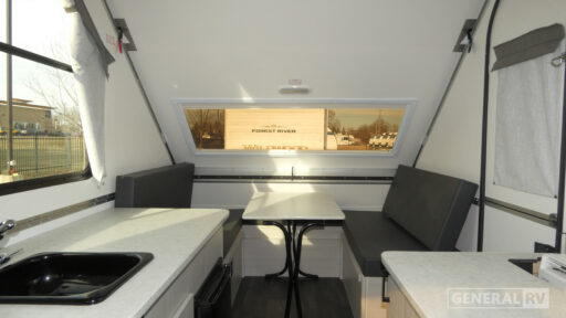 When all you need is the basics to camp, this Scout Lite will be perfect for you! There is sleeping space on either the front 30" x 76" bed or the rear dinette which converts into a 40" x 76" bed. There is plenty of storage throughout between the storage under the front bed, under the sink, and the exterior baggage door. And you can keep everything charged with the two electrical outlets inside and the one exterior electrical outlet!