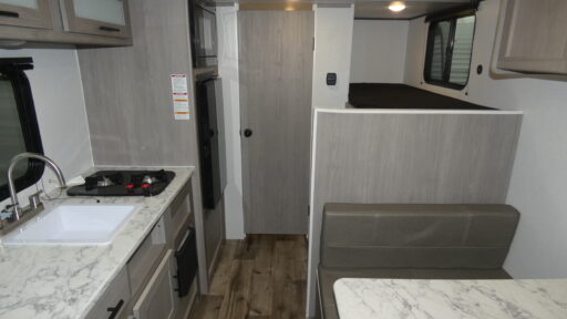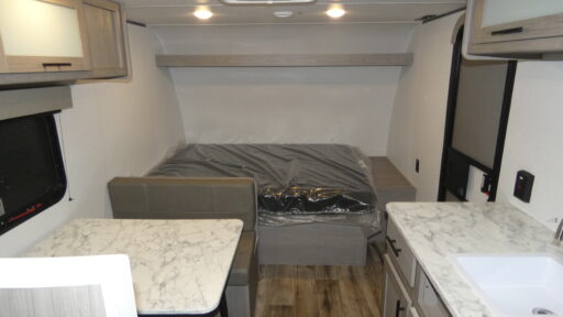 The 2026 Dutchmen Aspen Trail 17BH is a perfect compact family travel trailer for weekend trips or extended camping adventures. The rear bunk beds give great sleeping space for kids or guests, while the front queen bed offers a comfortable primary sleeping area. The booth dinette easily converts to sleep even more, so this floorplan can sleep up to five without feeling crammed. Meal prep and snacks are a breeze with the two-burner cooktop, microwave, and 3.3 cu ft 12 V refrigerator, and overhead cabinets keep dishes and pantry items organized. You’ll appreciate the private shower and toilet so you don’t have to run to campground facilities at night, plus the power awning expands your living space outdoors on sunny days. With a lightweight build and smart floorplan, the Aspen Trail 17BH makes family camping simple, fun, and comfortable