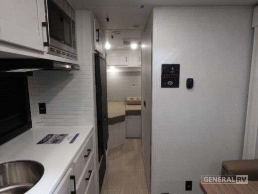 Whether you are traveling to your favorite campground or across the country, you are going to love this motorhome. You will have versatility in this coach to travel with a friend or your sweetheart with two twin beds that can easily convert to a king bed if you like. Each bed is 36" x 73" with a nightstand between and overhead storage along both sides and across the rear of the unit providing plenty of space for your things. There is also a wardrobe off the foot of the twin that is on the curbside. A sofa slide out with a table will provide a place to relax and dine together. The kitchen is opposite the slide on the door side and features a round hidden sink with solid surface cover for added prep space, a 12-volt 6 cu. ft. refrigerator for your perishables, and a microwave oven and induction cooktop for easy meals as you travel. When you want to get cleaned up, there is a bath with an angled shower, toilet, and sink, plus medicine cabinet for your toothbrush and razor.