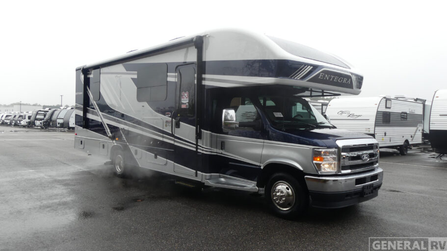 Make one of these Entegra Coach Esteem Class C gas motorhomes your own! The interior design includes solid-surface countertops that pair well with the many technological upgrades. The fully custom-molded ABS surround in the cab area features its signature panoramic window and power shade for a beautiful view while you drive and provide privacy at night. They also come with E-Z Drive Elite which has a computer-balanced driveshaft, Koni FSD shocks, Hellwig helper springs, and a heavy-duty rear stabilizer bar for a smooth ride. Automatic leveling jacks will make set-up a breeze and the electric awning with LED lights will create an outdoor living space where you can relax after unpacking. Inside, you'll enjoy hardwood cabinet doors and drawer fronts, blackout night roller shades, and high-intensity recessed LED ceiling lights to keep your space well lit. There is also a JBL audio system and a BMPRO total coach control system to easily manage your unit's functions!