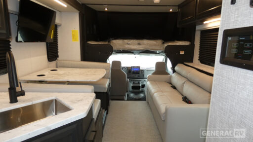With any Altitude Class C gas motorhome by Fleetwood RV, you will enjoy unrivaled performance, unbeatable storage, and luxury at every turn! You will love the journey just as much as the destination with a Ford 7.3L V8 engine and a 6-speed automatic transmission. Each model features a fully encased aerodynamic inspired front bunk cap, tuff-ply thermal polyolefin engineered vinyl composite roofing, and modern exterior vinyl graphics. There are also oversized exterior storage compartments, a premium tankless water heater, and a 1000w upgraded inverter to keep you going. The durable marine grade flooring will stand up over the test of time, and you're going to love the premium galley appliances!