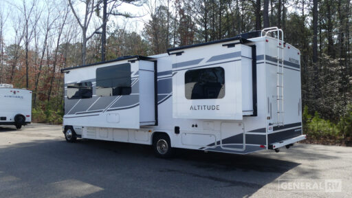 With any Altitude Class C gas motorhome by Fleetwood RV, you will enjoy unrivaled performance, unbeatable storage, and luxury at every turn! You will love the journey just as much as the destination with a Ford 7.3L V8 engine and a 6-speed automatic transmission. Each model features a fully encased aerodynamic inspired front bunk cap, tuff-ply thermal polyolefin engineered vinyl composite roofing, and modern exterior vinyl graphics. There are also oversized exterior storage compartments, a premium tankless water heater, and a 1000w upgraded inverter to keep you going. The durable marine grade flooring will stand up over the test of time, and you're going to love the premium galley appliances!