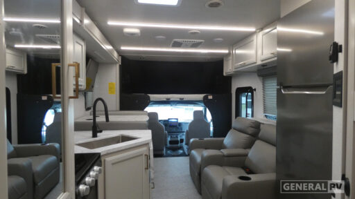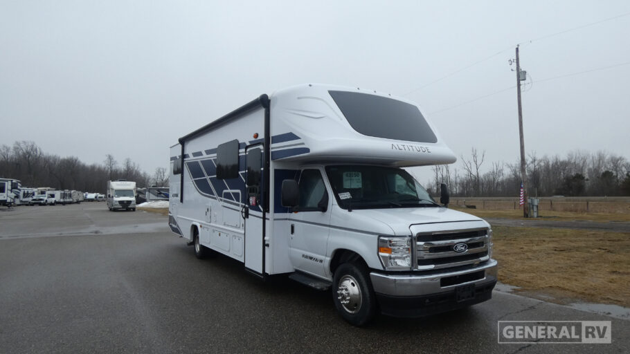 With any Altitude Class C gas motorhome by Fleetwood RV, you will enjoy unrivaled performance, unbeatable storage, and luxury at every turn! You will love the journey just as much as the destination with a Ford 7.3L V8 engine and a 6-speed automatic transmission. Each model features a fully encased aerodynamic inspired front bunk cap, tuff-ply thermal polyolefin engineered vinyl composite roofing, and modern exterior vinyl graphics. There are also oversized exterior storage compartments, a premium tankless water heater, and a 1000w upgraded inverter to keep you going. The durable marine grade flooring will stand up over the test of time, and you're going to love the premium galley appliances!