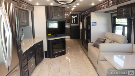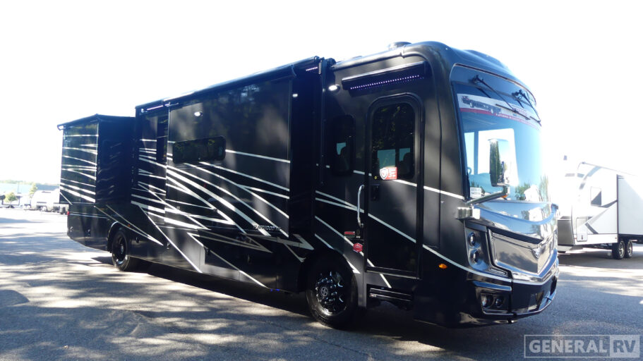 The Discovery 38N doesn't just impress with its interior design; it also boasts a remarkable 105-gallon fresh water capacity, ensuring you'll have plenty of resources for extended adventures. The residential refrigerator and well-appointed kitchen make meal prep a breeze, while the washer/dryer prep offers convenience for longer trips. With two awnings, you can create the perfect outdoor living area, whether you're at a campsite or exploring the great outdoors. Experience the ultimate in RV luxury and performance with the Fleetwood Discovery 38N. For more details, visit your nearest General RV dealership.