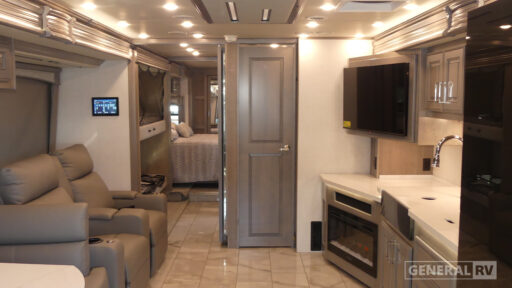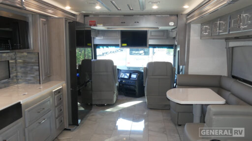 The Discovery LXE Class A diesel motorhomes by Fleetwood RV features a Freightliner XCM chassis for the ultimate in power, storage, and drivability. The captain's seats provide comfort at every turn, and you'll have an OptiView instrument panel, color backup monitor, and tuned SACHS® shocks for your peace of mind. The interior will have you feeling right at home with its porcelain tile flooring, floor heat in the living area, hardwood cabinetry, and polished solid surface galley countertop with lighting. For more information or to see it in person, visit your nearest General RV dealership.