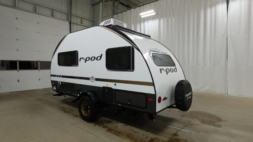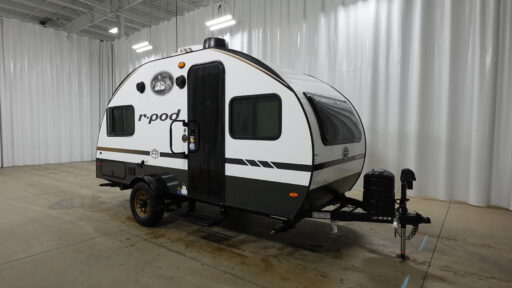 With any R-Pod travel trailer by Forest River, you will enjoy affordable luxury at the lowest tow weight in its class! There is a sealed underbelly with forced heat, a curved dual-pane acrylic front window with a bug screen and night shade, plus a large roof mounted solar panel for off-grid capabilities. The 15K A/C unit will keep you comfortable during the summer camping months, and the tankless water heater will provide endless hot showers after hiking, biking, swimming and more! Each model also includes a black glass friction hinge entrance door, roof ladder prep, exterior motion lighting, plus a hot and cold exterior spray port to wash off sand from the beach. Inside, you'll enjoy seamless Surf-X kitchen countertops, blackout roller shades, and a central vacuum system for hassle-free cleaning!