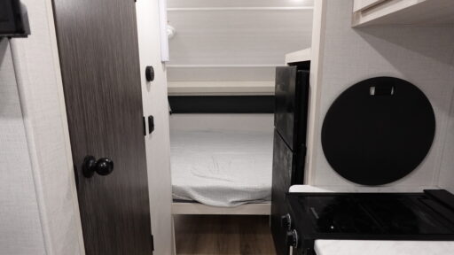 This travel trailer is perfect for weekend trips or month-long vacations to enjoy the great outdoors with conveniences of home. You can easily sleep three people with a rear queen bed and a front dinette folded down for the little ones. This unit also includes a two-burner cooktop and convection microwave to make meals inside. You will also find a convenient wet bath where you can easily get ready for bed each night, and the night light will help you not stumble over the sleeping dog!