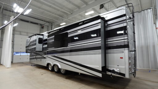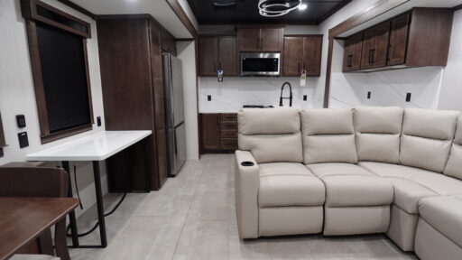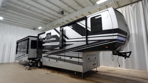 The Forest River RiverStone fifth wheels and toy haulers are luxurious units that have it all! You'll find an automatic six-point hydraulic level-up system to keep your unit in place, and there is preparation for a four-camera observation system. The TravlFi Journey XTR 4G/LTE router and WiFi extender will help you stay connected to the outside world, and you'll never have to overpack again since the Splendid “Astral” stackable washer and dryer will let you clean the small amount of clothes you've brought with you. Another high luxury is the Fischer Paykal dishwasher which will allow you to spend more time enjoying your camp life and less time cleaning up. Each unit is built with an LCI Road Armour suspension system, dual-pane frameless windows, a full docking station, a 200W solar panel, and a BMPro touch control system.