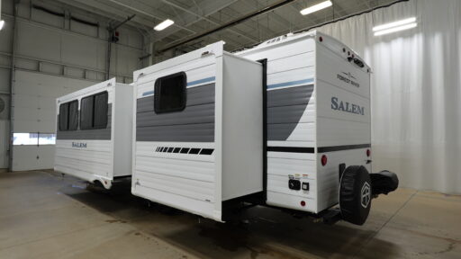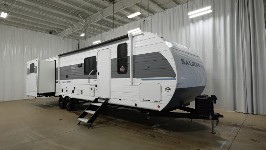 The Salem travel trailers are packed with hassle-free camping amenities! There are a variety of floorplans to choose from between three different regions. The heated and enclosed Accessibelly will help protect against the elements and debris during transport, and the exterior retro/metal redesign is sure to be eye-catching! There are stylish roller shades inside, along with updated backsplash, elegant curtain rods and curtains, plus many more interior comforts! Choose a Salem travel trailer today for quality and value!