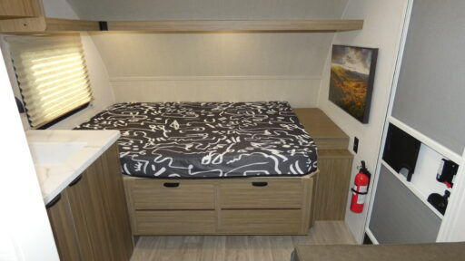 This lightweight travel trailer has everything you need to enjoy camping trips! There is a front east to west custom queen bed with storage at the foot of the bed and overhead for your valuables. A private bath includes a toilet and walk-in shower so you can easily get ready each day, and you can prepare your meals on the two-burner cooktop when you get hungry. The booth dinette will provide dining space. Don't let this trailer get away!