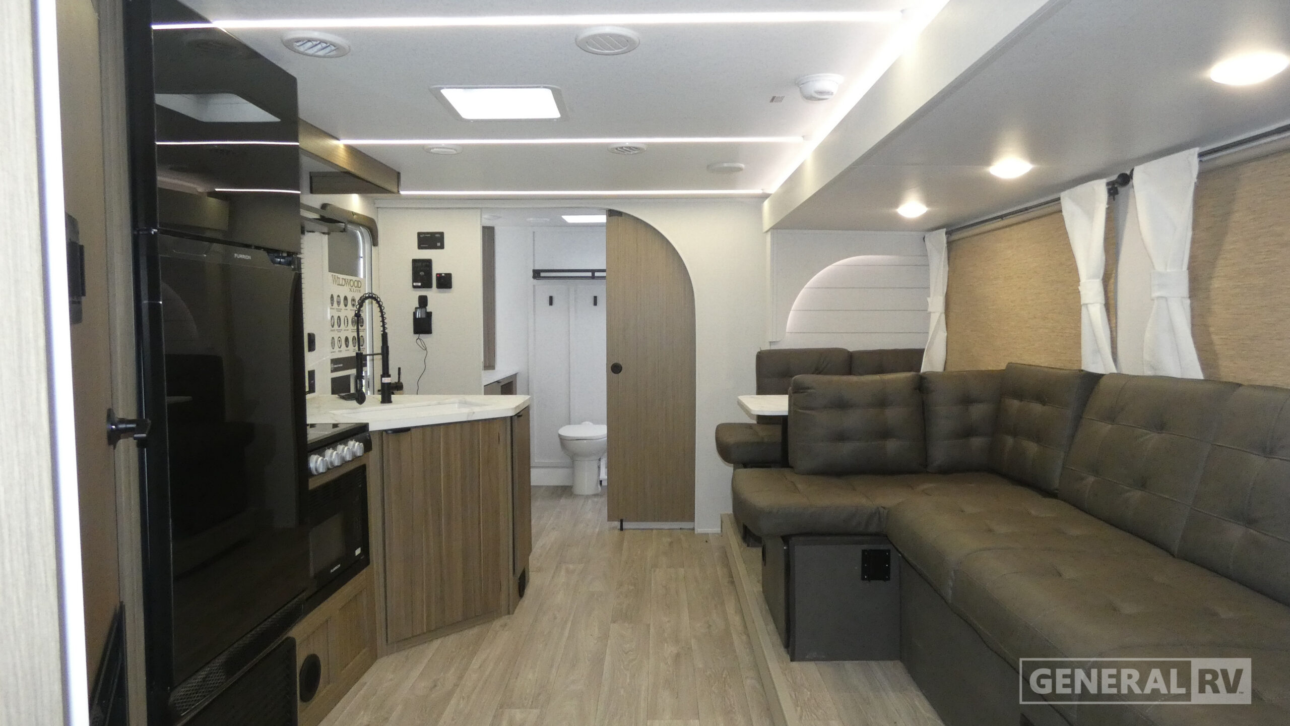 The Wildwood X-Lite travel trailers are packed with hassle-free camping amenities! The enclosed Accessibelly will help protect against the elements and debris during transport, and the exterior retro/metal redesign is sure to be eye-catching! There are stylish roller shades inside, along with updated backsplash, elegant curtain rods and curtains, plus many more interior comforts! Choose a Wildwood X-Lite travel trailer today for quality and value!