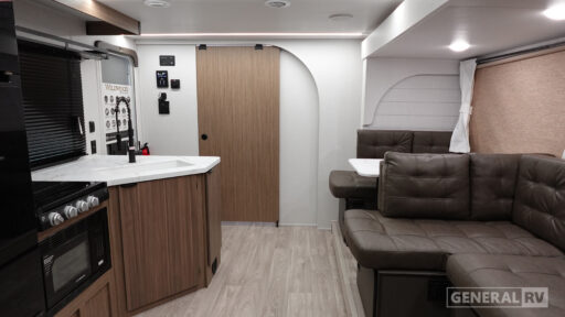 The Wildwood X-Lite travel trailers are packed with hassle-free camping amenities! The enclosed Accessibelly will help protect against the elements and debris during transport, and the exterior retro/metal redesign is sure to be eye-catching! There are stylish roller shades inside, along with updated backsplash, elegant curtain rods and curtains, plus many more interior comforts! Choose a Wildwood X-Lite travel trailer today for quality and value!