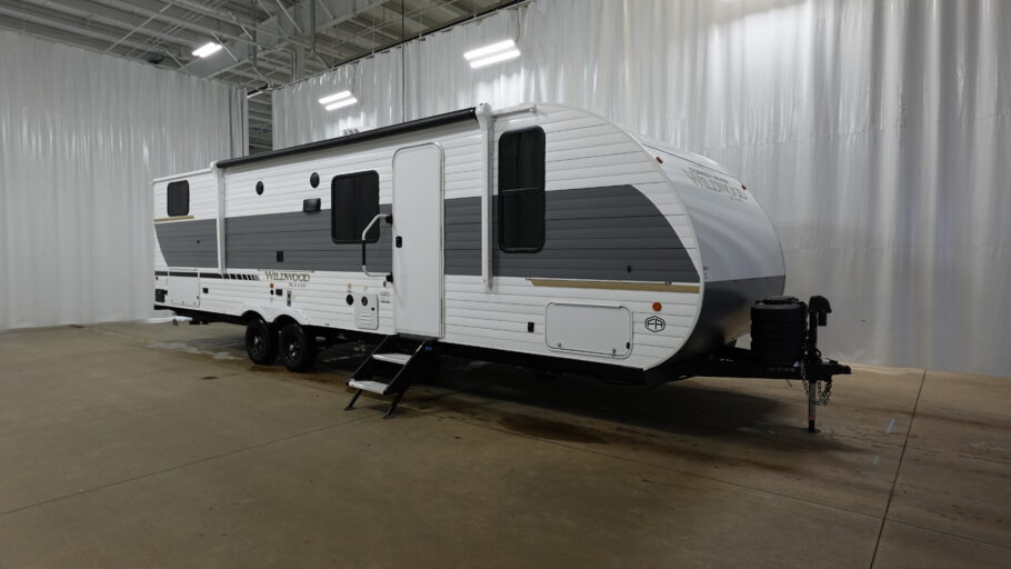 The Wildwood X-Lite travel trailers are packed with hassle-free camping amenities! The enclosed Accessibelly will help protect against the elements and debris during transport, and the exterior retro/metal redesign is sure to be eye-catching! There are stylish roller shades inside, along with updated backsplash, elegant curtain rods and curtains, plus many more interior comforts! Choose a Wildwood X-Lite travel trailer today for quality and value!