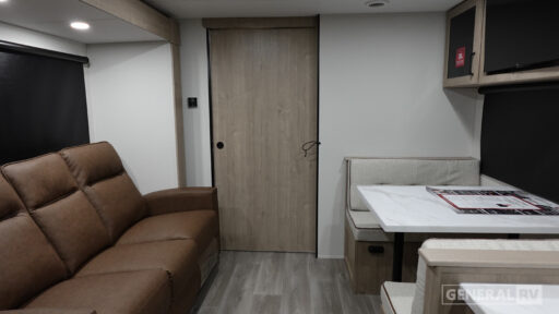 Treat yourself to a weekend of fun in this Imagine XLS travel trailer! Whether it's just you and your spouse, or you've chosen to bring along a group of friends, this trailer will meet your needs. The front bedroom can sleep two people on the walk-around queen-size bed. The bedroom is quite functional because it not only contains the second exterior entry door, but it also has a private entrance into the walk-through bathroom since it is located on the other side of the bathroom. The booth dinette is functional too because it can transform from a dining location into a sleeping location, and the theater seating is directly across from the LED TV for easy viewing. The rear kitchen is fit for the chef on the trip, it features residential countertops, a stainless-steel sink and a 3-burner range with oven for you to cook your meals in comfort.