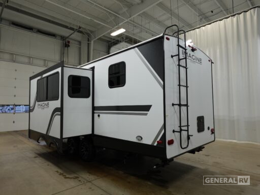 The thoughtful design extends to a rear bath with a privacy curtain, ensuring convenience and comfort. Outside, the 21 ft. powered retractable awning creates the perfect outdoor living area, complete with a griddle and LP quick connect for alfresco dining. The Imagine 2470BH also boasts a drop-frame pass-thru storage, offering plenty of room for all your adventure gear. Whether you're planning a weekend getaway or an extended road trip, this RV promises to be your home away from home. For more details, visit your nearest General RV dealership.