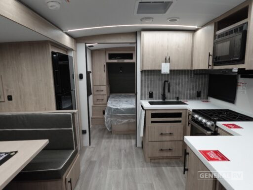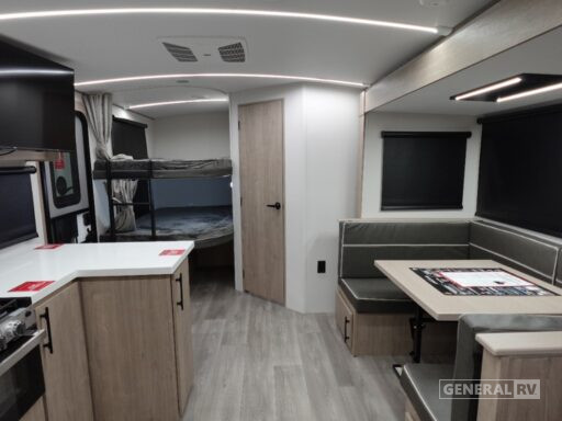 Discover the 2026 Grand Design Imagine 2470BH, where modern design meets family-friendly functionality. This RV is perfect for those who cherish both adventure and comfort. With a spacious layout accommodating up to eight sleepers, it features a queen bed and double over double bunks, making it ideal for family getaways. The center kitchen is equipped with a full-size refrigerator and a three-burner cooktop, ensuring you can whip up delicious meals on the road. The U-shaped dinette offers a cozy spot for dining or can be converted for additional sleeping space, while the pull-out pantry provides ample storage for all your culinary needs.