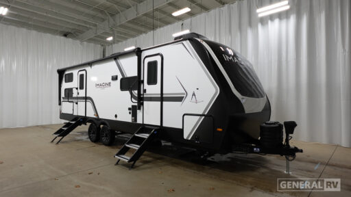 Just imagine leaving the world behind and secluding yourself away with your favorite people in your Grand Design Imagine travel trailer! The Imagine has been designed to enjoy camping and includes a high-capacity furnace, a heated and enclosed underbelly with suspended tanks, a designated heat duct to the subfloor, and a high-density roof insulation with attic vent. You'll have a large panoramic window to let natural lighting in and an adjustable Power Awning with LED Lights for those night gatherings. The exclusive drop-frame pass-through storage compartment is going to allow you to bring along lots of equipment, and the universal docking station is an all-in-one location for utilities and hook-ups. You'll also have oversized tank capacities so that you can fill and empty your tanks less often.