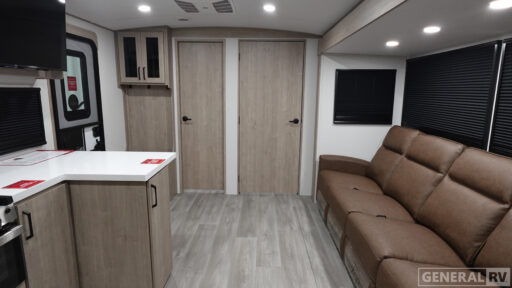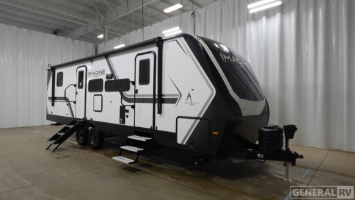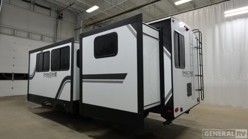 The Imagine 2810BH is equipped with a well-appointed kitchen, complete with a pull-out pantry and a flip-up countertop extension for added convenience. The 21-foot awning creates an inviting outdoor living space, perfect for enjoying the fresh air and scenic views. With a robust fresh water capacity of 45 gallons and ample storage solutions, including drop-frame pass-thru storage, this RV ensures you have everything you need for extended adventures. For more details and to experience this remarkable RV firsthand, visit your nearest General RV dealership.