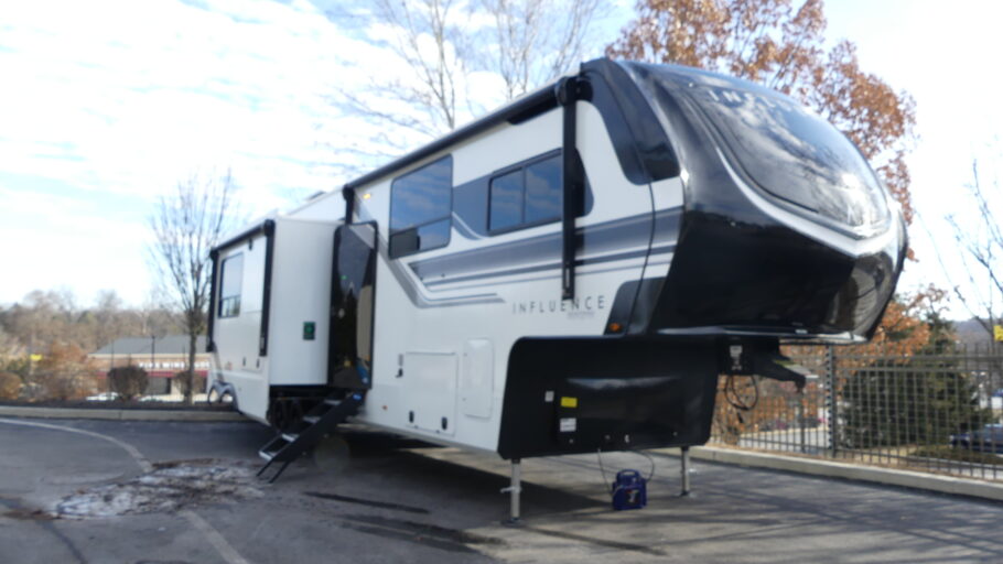 The sleeping arrangements are equally impressive, accommodating up to six people. The master suite boasts a 60" x 80" queen bed, while a loft above the bedroom offers additional sleeping space with a folding queen bed, making it ideal for families or guests. With two awnings providing shade and comfort, and generous storage options including pass-thru and exterior storage, the Influence 3804DS ensures you have everything you need for memorable adventures. Discover this extraordinary RV at your nearest General RV dealership and start your journey today.