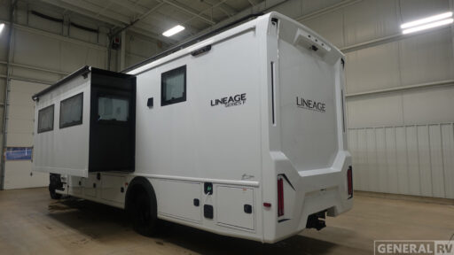 The capable Lineage Series F Super C diesel motorhome by Grand Design is your ticket to adventure! There is a Fox Factory Suspension Package for optimal handling, and you can go off the beaten path with the 6.7L power stroke diesel 4x4 chassis. This coach sits on the Ford F-600 super duty platform, and features a MorRyde tubular steel frame for added strength and durability. You'll find many at-home comforts inside, including comfortable seating and sleeping spaces, full bath and kitchen amenities, and plenty of storage for your personal belongings and camp gear!