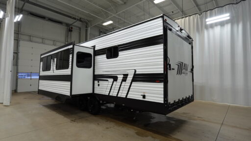 Built for adventure without sacrificing comfort, the 2026 Grand Design Momentum 28MAV is a versatile toy hauler travel trailer designed to handle everything from weekend escapes to extended off-grid trips. The spacious 10′ 4″ garage easily accommodates ATVs, bikes, or gear and converts into a functional living or sleeping space when parked.